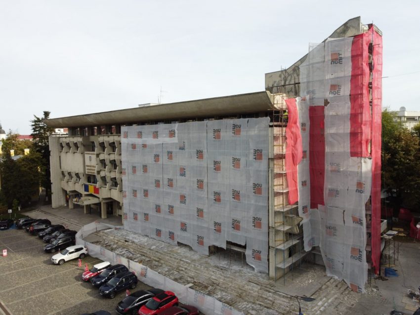 Se lucrează la fațada Palatului Administrativ din Botoșani