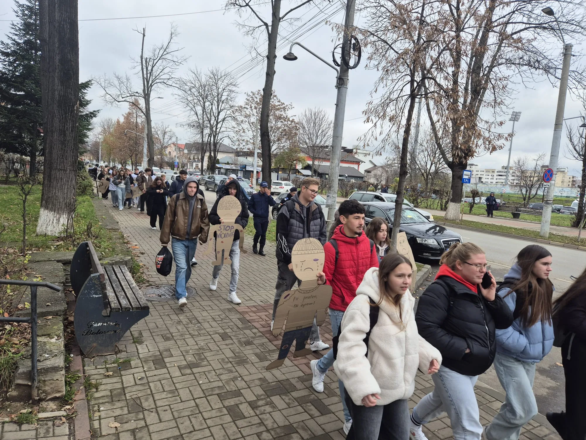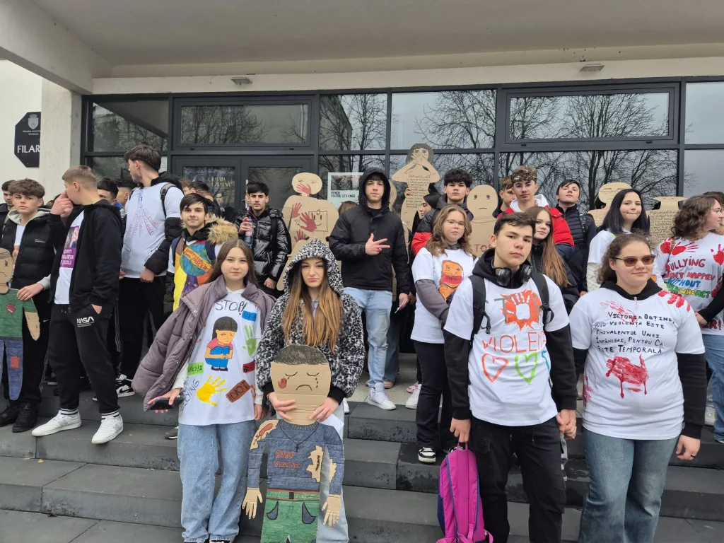 Elevii au creat pentru acest eveniment tricouri cu mesaje nonviolente, precum și siluete umane, realizate din carton, în mărime naturală, pe care au notat diferite ”povești”/studii de caz legate de victimele abuzului/violenței. De asemenea, au împărțit trecătorilor flyere cu mesaje nonviolente.