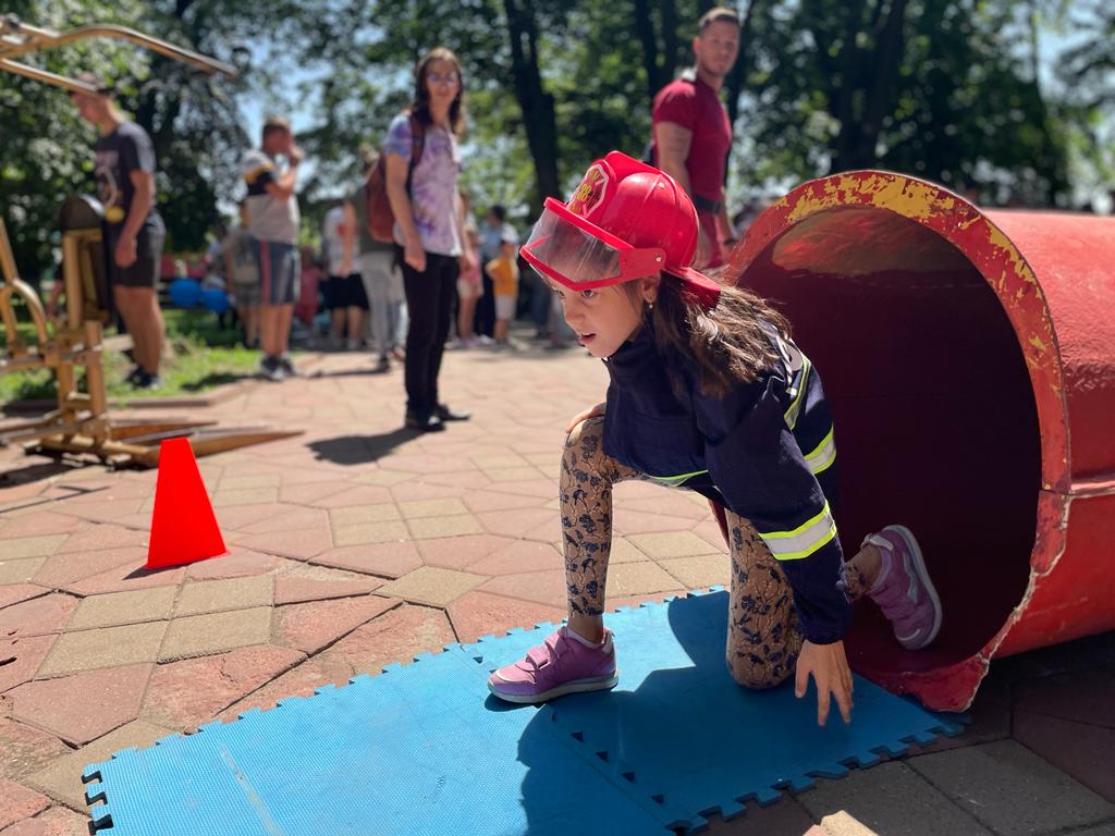 Misiunea de salvare a unor animăluțe de pluș după parcurgerea unui taseu cu obstacole, sub directa coordonare a celui mai renumit salvator, Pompierul Sam, i-a atras pe cei mici ca un magnet. Bucuria de a îmbraca uniforma de pompier s-a citit în ochii fiecărui copil.