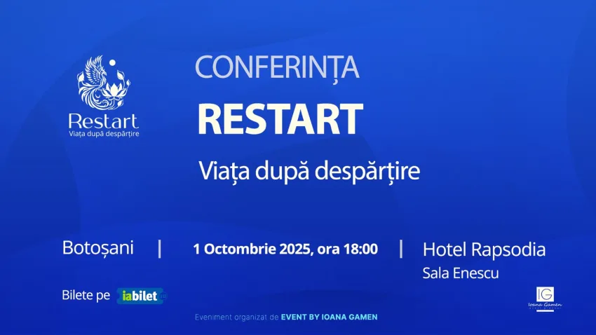 Pe 1 octombrie, Botoșani găzduiește prima conferință din România dedicată celor care trec printr-o despărțire: „Restart: Viața după despărțire”. Într-o societate care încă privește despărțirile ca pe un eșec, un eveniment curajos vine să schimbe perspectiva. Pe 1 octombrie 2025, la Hotel Rapsodia din Botoșani, are loc „Restart: Viața după despărțire” – prima conferință din…