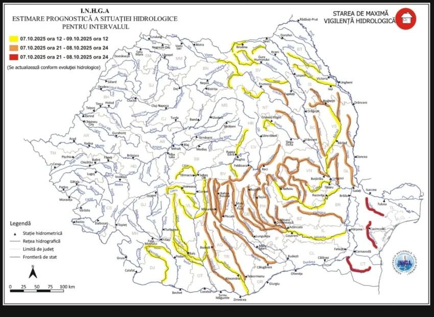 Hidrologii au actualizat prognoza și au anunțat că există risc de inundații pe râul Jijia și afluenții aferenți sectorului aval confluență cu râul Sitna, motiv pentru care au instruit Cod galben, valabil de astăzi, de la ora 18:00, până pe 9 octombrie, la ora 12:00. Fenomenele prognozate sunt „scurgeri importante pe versanţi, torenţi, pâraie, viituri…